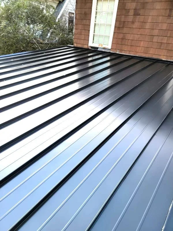 Standing seam metal roofing is a superior product to exposed fastener metal due to its hidden fastener design, thicker and more durable metal panels, and overall water tightness. These features make it ideal for covering primary residential structures.